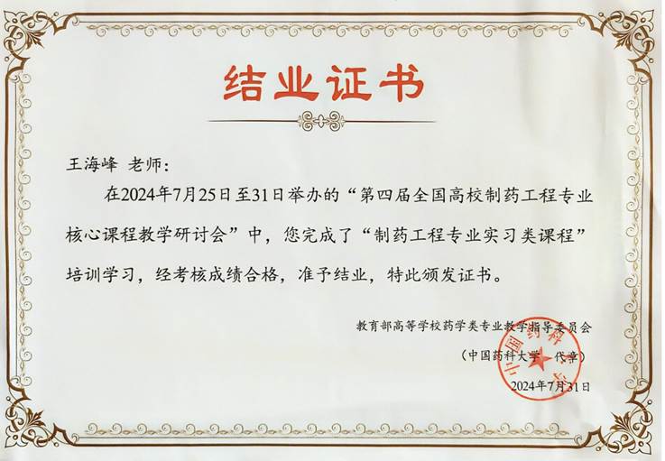 本网讯(通讯员 龙姣 王海峰)2024年7月,教育部高等学校药学类专业教指委成功举办了2024年全国高校制药工程专业教育研讨会以及第四届全国高校制药工程专业核心课程教学研讨会。教育研讨会19-21日在大连举办,承办单位为大连大学;教学研讨会25-31日在石家庄举办,承办单位为石家庄学院。两场会议围绕制药工程专业创新人才培养和提高教学质量开展研讨,主旨分别是“适应新质生产力发展需求,培养制药工程创新人才”、“进一步提高全国高校制药工程专业办学水平,提升制药工程专业核心课程的教学质量”。mk网页版登录入口张珩教授和刘根炎教授受邀分别在两场会议上做了报告,并担任核心课程教学研讨会的授课专家,亲赴石家庄以岭药业及四药集团进行现场教学与交流研讨指导工作。