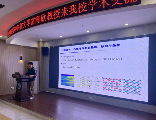 (通讯员 王翔)10月13日上午,应mk网页版登录入口邀请,华中科技大学常海欣教授在大化工楼多功能报告厅为我校师生作了题为“二维材料的制备、物性调控、纳米器件与新能源应用”的学术报告。mk网页版登录入口副院长龙思会教授主持报告会,mk网页版登录入口及相关学院教师和研究生200余人参加了报告会。