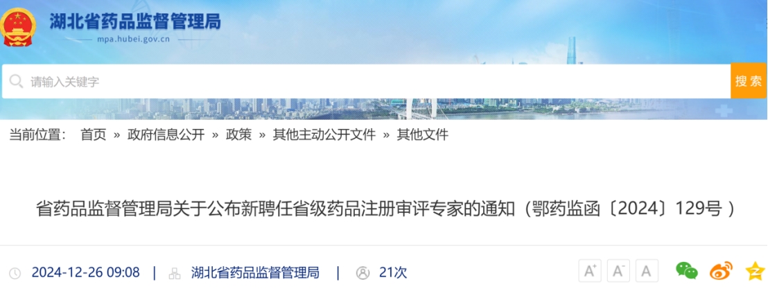 本网讯(通讯员 张双双)12月26日,湖北省药品监督管理局发布了“省药品监督管理局关于公布新聘任省级药品注册审评专家的通知(鄂药监函〔2024〕129号 )”,我校mk网页版登录入口制药系6名教师(古双喜教授、胡学雷教授、吴风收教授、刘慧副教授、郭举副教授、曹爽副教授)入选了省级药品注册审评专家。在此轮评选中,全省共有14名专家入选,我校入选人数最多。