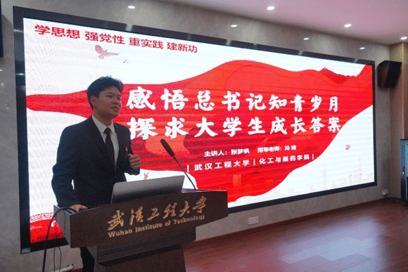 本科制药工程党支部张梦帆以“感悟总书记知青岁月,探求大学生成长答案”为主题分享专题党课。熟读《习近平的知青岁月》一书,张梦帆对习近平总书记在梁家河的知青经历娓娓道来,带领大家一同从习近平总书记壮阔知青岁月所蕴藏的伟大精神中探索大学生的成长答案,号召在座党员同学们要将“仰望星空”与 “脚踏实地”相结合,大学生的成长答案不光在课本上寻找,更要在乡村、在社区、在祖国大地上寻找,作为新时代的大学生党员,要用实践抒写青春,奉献青春。
