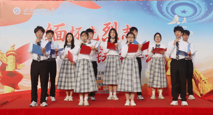 许志伟班团支部11名学生代表朗诵《致先辈》,铿锵的语句,饱满的感情向先烈们表达深切缅怀和崇高敬意。