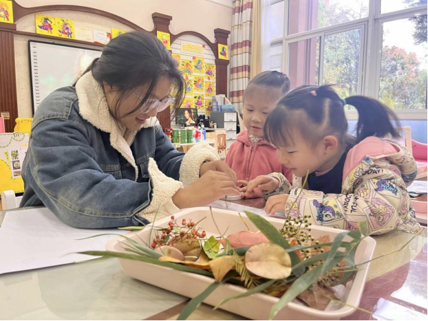 为培养同学们发现美、欣赏美、创造美,同时引导孩童们变废为宝、化腐朽为神奇,体会到环保和创作的意义所在,化药师生组织森林小镇幼儿园的小朋友们用落叶创作出一幅幅独特的树叶画。此外,学院心理工作站的同学们还对小朋友的作品进行“画语”解读,分析孩童们的内心世界、引导他们健康成长。