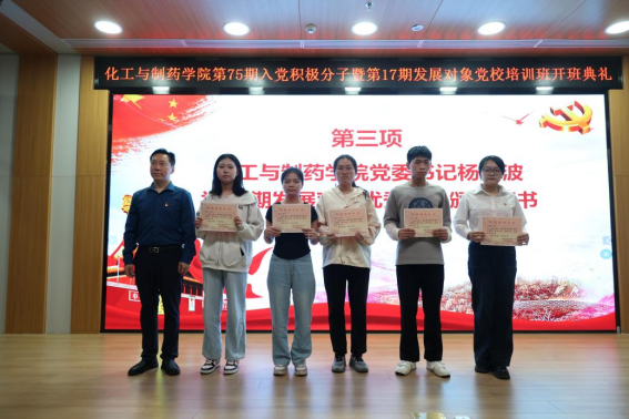 会上,杨海波、周丹分别为第16期发展对象、第74期入党积极分子培训班优秀学员颁奖。