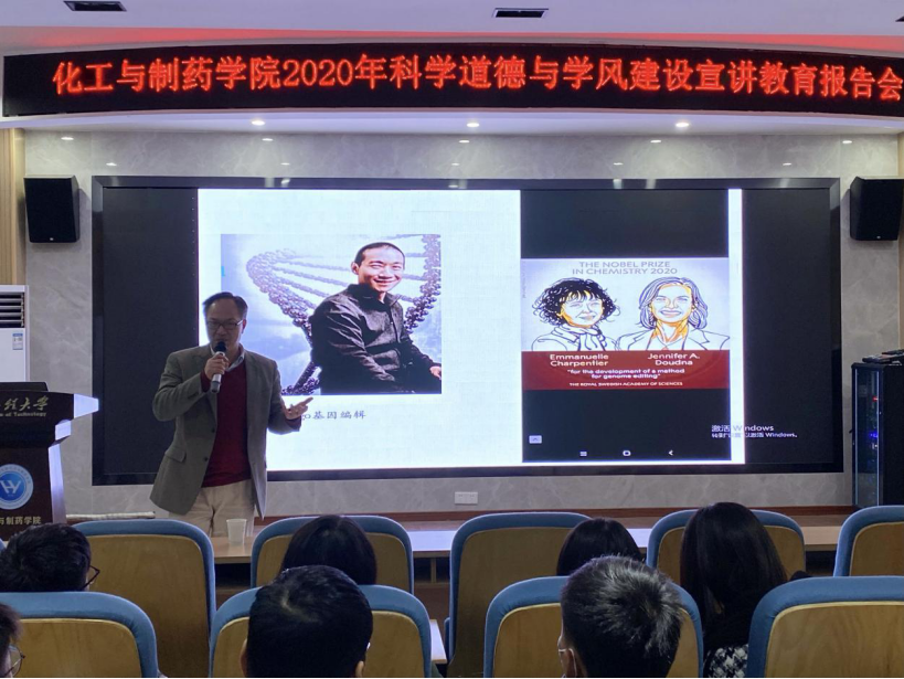 本网讯(通讯员 周雅琪)为深入学习贯彻习近平总书记关于科学道德和科研诚信建设重要指示精神,贯彻落实《关于进一步加强科研诚信建设的若干意见》《关于进一步弘扬科学家精神加强作风和学风建设的意见》,12月12日,mk网页版登录入口在大化工楼610报告厅举办科学道德和学风建设宣讲教育专题报告会,学院副院长龙思会作专题报告。导师代表、研究生辅导员及100余名研究生参会。