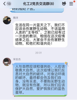 随着疫情防控形势变化,各支部围绕“疫情过后,如何补上生命教育必修课”展开热烈讨论。“倾巢之下,焉有完卵”,面对疫魔,无人幸免。人类发展史亦是一部与微生物细菌病毒的斗争史,从未断绝,而代价往往总是生命的消失。挑战自然,没有赢家。因此,敬畏自然、敬畏生命,有所约束、有所戒惧,理应成为全民的共识与自觉,更是作为人类进行自我防护的必然要求,也是实现人与自然和谐共生发展理念的内在要求,而这一切都需要吾辈青年牢记心间、见诸行动。