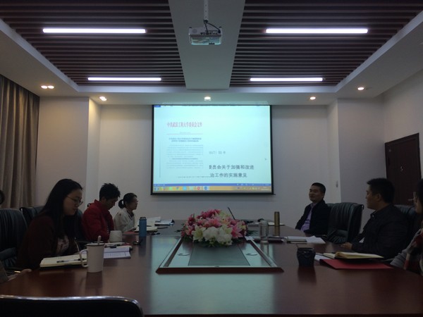 田勇带领全体辅导员集中学习了学校思想政治工作会议召开背景,《实施意见》出台过程,学校思想政治工作会议精神,《实施意见》主要内容以及张文学副校长在“贯彻学校思想政治工作会议精神我们要‘行动’”的辅导报告会上提出的落实行动及工作要求。会上,全体人员针对学院“红星闪闪,先锋行动”党建品牌创优计划,新形势下“许志伟精神”的凝练和学院“大思政”工作的创新进行了深入讨论,各辅导员结合自身分管工作依次发表了个人观点。