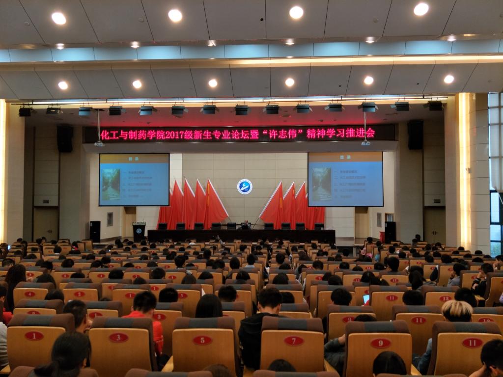 10月19日下午2时,mk网页版登录入口2017级新生专业论坛暨“许志伟”精神学习推进会分别在流芳校区四教多功能报告厅和L1219教室隆重举行。学院院长喻发全、制药工程专业人才培养发展中心主任张珩、生物工程专业人才培养发展中心张佑红、学院党委副书记田勇老师出席会议。会议由辅导员郭洪伟主持。