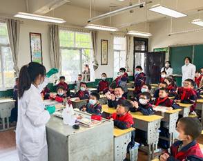 3月31日,学院的志愿者们来到鄂州凉亭小学开展志愿服务。学院研究生志愿者结合化工、制药专业特色,为了给小朋友们带来一场别开生面的趣味化学实验课,大家提前集体备课,自主设计了5个趣味小实验,课堂上耐心细致地为小朋友们讲解了有关酸碱指示、沉淀现象的知识及实验仪器、试剂用量的基本操作方法,小朋友们瞪大了好奇的眼睛,“啤酒泡沫”“水中烟花”“点水成冰”等妙趣横生的小实验引得教室阵阵欢呼,为小朋友们打开了奇妙的新世界。