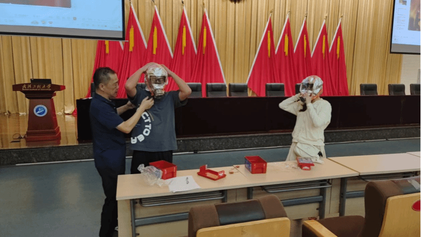 王子龙作暑期消防安全讲座。他通过展示丰富的案例,讲述了寝室、实验室火灾预防、扑救以及逃生的方法,强调了违规给电动车充电,违规使用大功率电器引发火灾的危害。他特意邀请学生上台,亲自示范防毒面具的正确用法。他指出,要记住“三清三关三灭”的消防准则,消防安全,人人有责,预防为主,防患未然,进一步提升了学生对消防安全的重视。