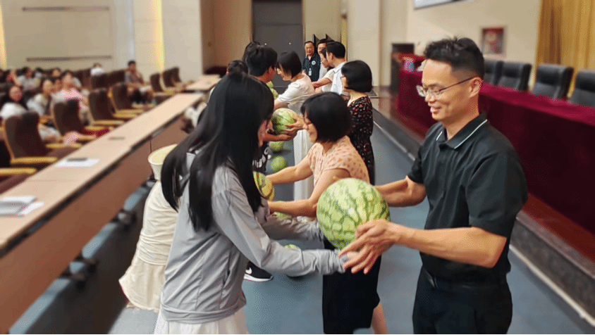 会上,学院举行“盛夏送清凉”暑期慰问活动,为700余名留校学生准备了200余颗西瓜。夏天的西瓜、橘色的晚霞是mk网页版登录入口在暑期独有的浪漫,学院已经持续4年开展“盛夏送清凉”暑期慰问活动,为酷暑期间仍旧坚持在一线开展紧急科研工作和备战考研的学生送上解暑西瓜。