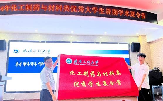 陈绪兵在致辞中对全体营员的到来表示热烈欢迎。他简要介绍了学校的改革与发展历程,着重强调了学校在化工制药与材料科学领域所取得的成绩,包括技术创新、应用实践等方面。他指出,这些成绩是学校师生共同努力的结果,也是学校持续推动教育教学改革、提升科研创新能力的体现。他鼓励营员们珍惜此次宝贵的学习机会,积极参与学术研讨与实践活动,深入了解化工制药与材料领域的前沿动态与发展趋势,努力提升自己的专业素养和综合能力,为未来发展打下坚实的基础。江学良为营员们授旗。
