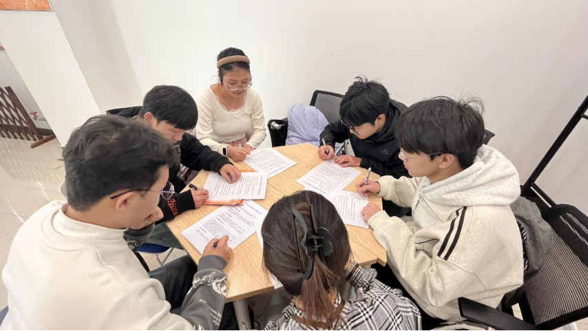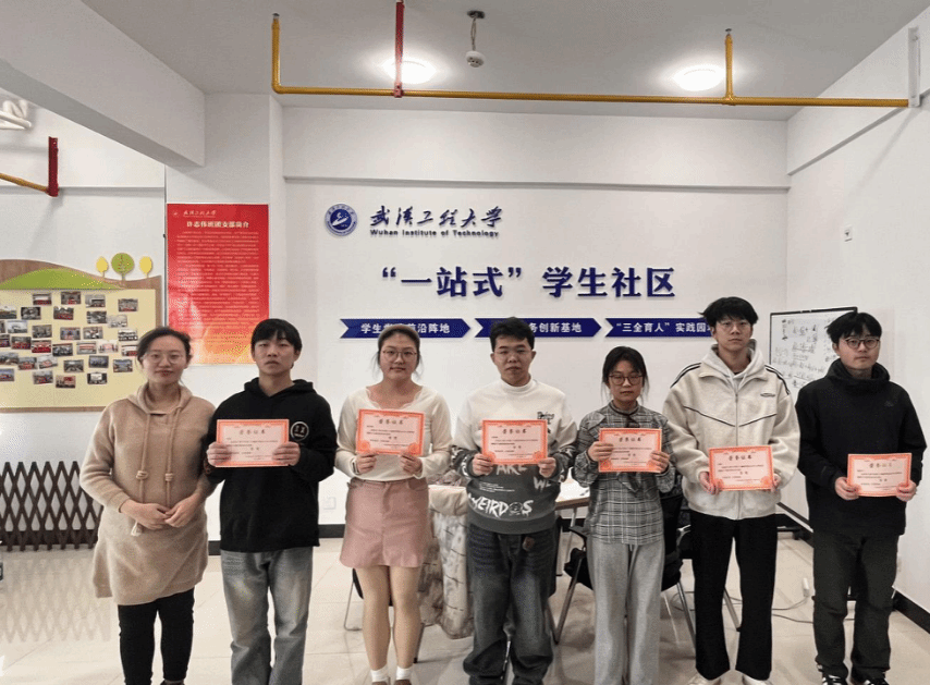 优秀学子代表赵俊涛、朱子杰、李盈,优秀班委代表刘小琳、邓焕然、张涛带头签订《红“磷”先锋 朋辈帮扶学风领跑承诺书》并共同商议推进学院有机化学、大学物理(光学)、大学物理(热学)等课程的朋辈帮扶计划。