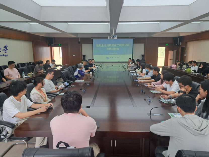 本网讯(通讯员 汤曦)5月26日,mk网页版登录入口联合机电工程学院、化学与环境工程学院在钟楼第二会议室共同举办襄阳金达成精细化工有限公司专场招聘会。襄阳金达成精细化工有限公司副总刘涵林、总经理张震、总工程师张雪和技术专员张洪梅受邀来校招聘,会议由mk网页版登录入口党委副书记周丹主持。