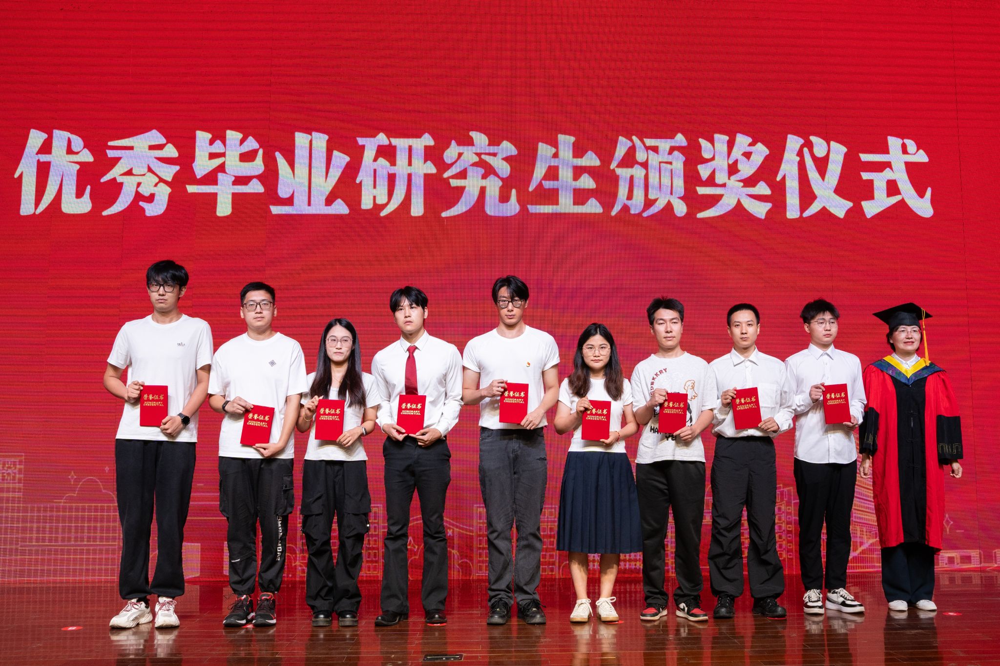 余响林为优秀毕业研究生颁发荣誉证书。