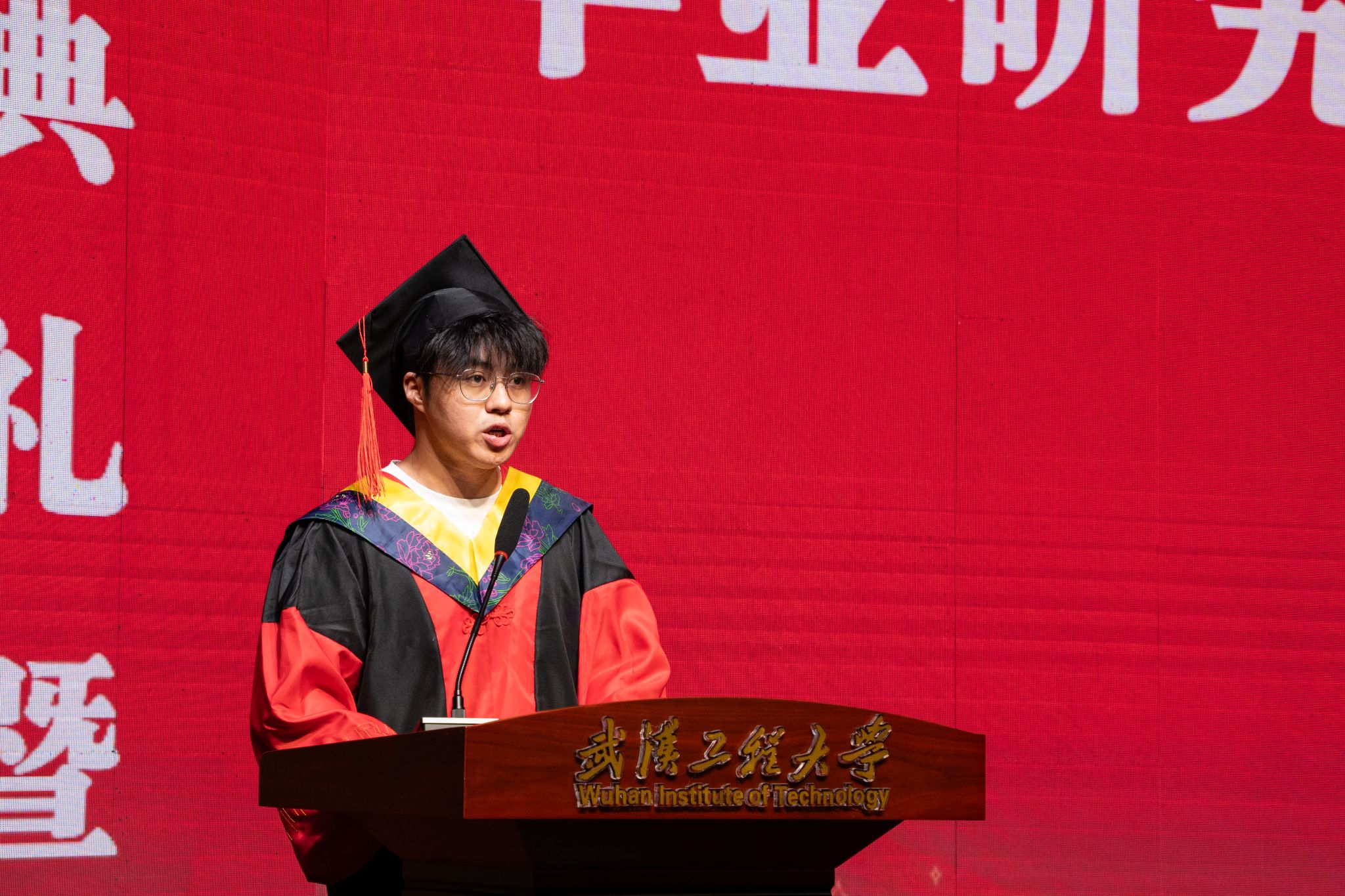 毕业研究生代表2020级博士生陈泇冰分享了自己的成长蜕变和学校的发展变化。他号召毕业生们,做科技强国路上的螺丝钉,坚守“探微知著”的科研初心,在各自领域绽放“纳米级”的独特光彩。