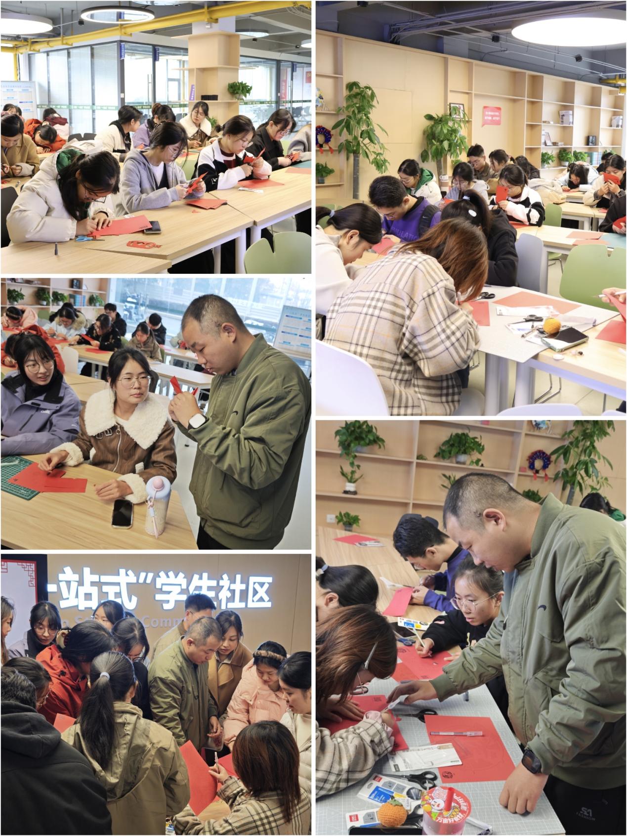 实操环节,同学们充分发挥创意灵感,手持工具专注勾勒、细心剪刻,现场欢声笑语不断。大家在沉浸式创作中享受乐趣,最终都收获了独具个性的剪纸成品,让美育实践落地生根。