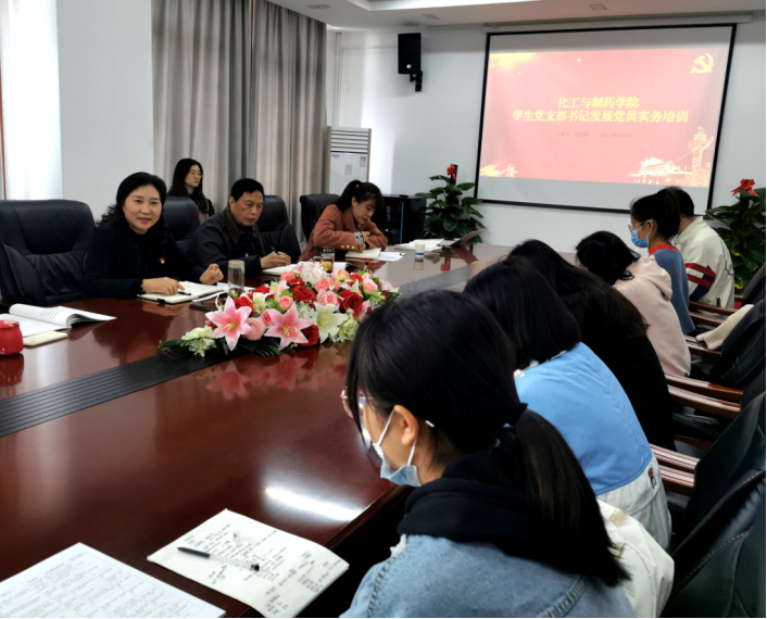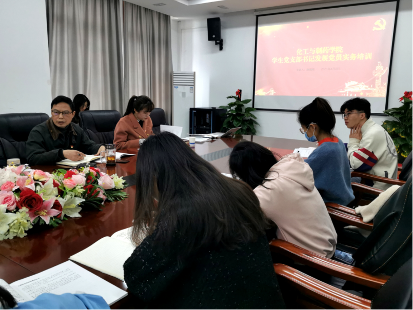 本网讯(通讯员 沈霁月)4月8日上午,mk网页版登录入口在化工大楼605会议室举行学生党支部党员组织发展专题培训会。校党委组织部党校办公室主任陈恩雨应邀做主题培训讲座,学院党委书记王雪梅、党委副书记周丹,组织员黄克文及全体学生党支部委员参加了此次培训会,会议由学院党委副书记周丹主持。