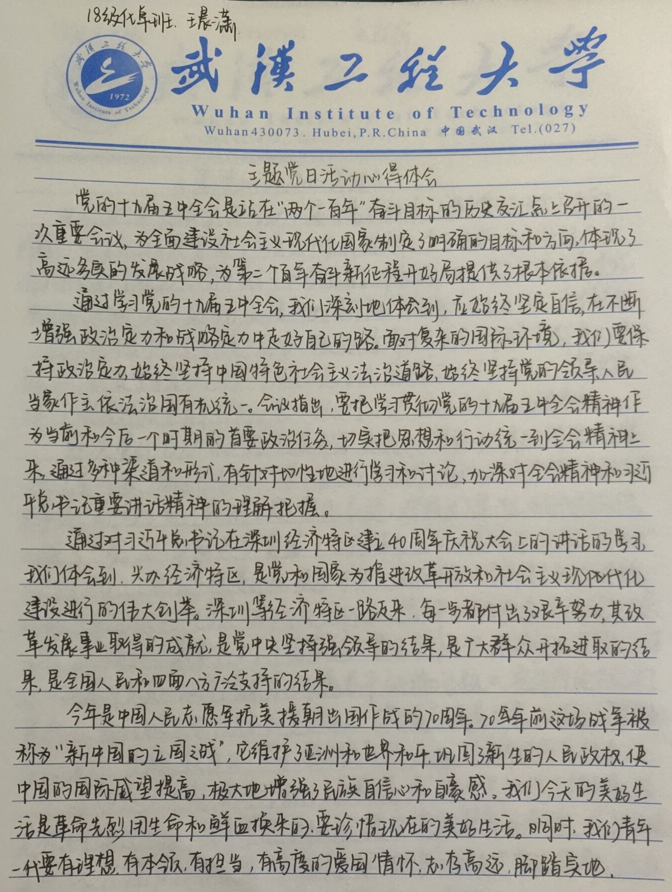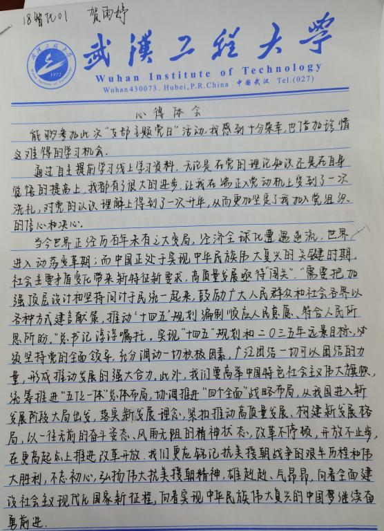 支部党员李睿媛分享了她作为抗疫志愿者的经历和感受,以武汉人的视角,回忆武汉地区疫情爆发前后的巨大变化。支部入党积极分子梅欣就此次主题党日活动畅谈心得体会,她讲到,面对疫情、冲锋在前、勇于担当是一名共产党员的责任和使命。支部发展对象陈晋林表达了自己对抗疫前线英雄们的崇敬之情,他提到以钟南山,李兰娟等为代表的抗疫前线人员给了全国人民极大的信心和底气,他们是这个时代最可爱的人。