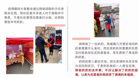 主题党日活动期间,mk网页版登录入口组织开展学习党员、入党积极分子抗疫故事宣讲会,讲述抗击疫情中青年学生的真实经历和感人故事,展现在抗击疫情中,学院学子努力为人民服务、艰苦奋斗、砥砺前进的精神。2018级化卓班的李睿媛讲述了自己在社区里发放生活物资、防疫执勤的志愿服务故事,分享了自己的入党初心;2016级的毕业生潘志立则为同学们细述了自己报名武汉市志愿者,并积极参与社区防疫工作,为社区居民生活提供服务的经历感悟。志愿者们用自己的实际行动诠释了当代大学生的担当与奉献精神,为学院学子树起了一面面旗帜。