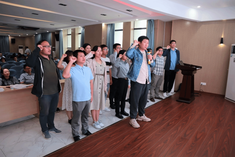 学院新进教师代表刘存成领誓,带领全体新入职教职工进行入职宣誓,全体教师在铿锵的誓词中进一步增强教师教书育人的责任感、使命感和荣誉感。