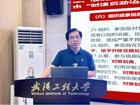 杨海波从党纪学习教育的背景意义及要求、高校开展党纪学习教育的必要性、《条例》的主要内容和典型问题、结合实际怎么做到学纪知纪明纪守纪四个方面讲授纪律党课。他结合校院两级工作实际,引导党员、干部切实做到学纪知纪明纪守纪。一是要学用结合,在学党纪中明方向、强筋骨、修初心,把党的纪律规矩内化于心、外化于行。二是要在铭记党纪中锤炼党性、纠风除弊、肃清党纪,熟知哪些该做、哪些不能做,做到心有所戒、行有所止。三是要做到明是非、知敬畏、守纪律,念好用好党章党规党纪这个“紧箍咒”“护身符”。四是要守住底线、不踩红线、不碰高压线,言行一致、表里如一,干净做事、清白做人。