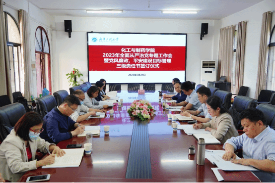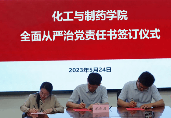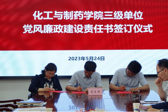 学院党委书记汪铁林、院长易群与三级单位代表制药制剂党支部书记、中心主任葛燕丽签订三级单位党风廉政建设责任书。