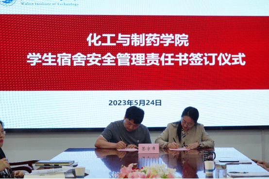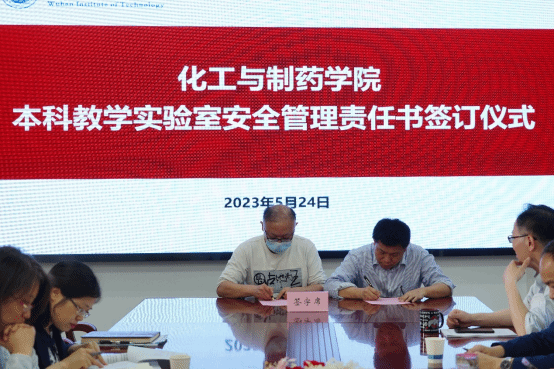 副院长金放与本科教学实验室责任人周霁签订学院本科教学实验室安全管理责任书。