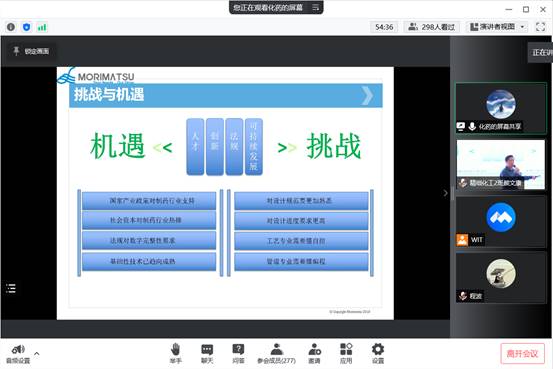 本网讯(通讯员 汤曦)5月5日下午,由学校招生与就业工作处主办,mk网页版登录入口承办的职业经理人行业讲座在流芳校区化工大楼610报告厅和腾讯会议室同步举行。上海森松制药设备工程有限公司武汉分公司总经理黄胜受邀作“化工与制药相关专业如何适应国家智能制造产业升级”的主题报告,学院党委副书记周丹、院长助理刘根炎出席会议,学院教师樊庆春、350余名学生代表参加会议,会议由19级辅导员汤曦主持。
