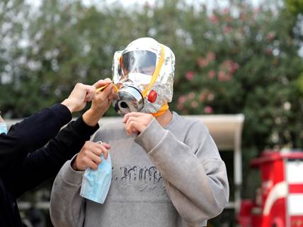 王老师详细讲解了干粉灭火器、灭火毯、防毒面具的性能、基本原理等操作方法,现场讲解并演示了各类消防器材的使用要领和注意事项。在细致的讲解之后, 王老师耐心指导同学们进行现场实操,强调了灭火器与灭火毯的操作要领和灭火时的风向判断等。同学们积极参加实操,掌握了基本操作方法,应急演练达到了预期效果。