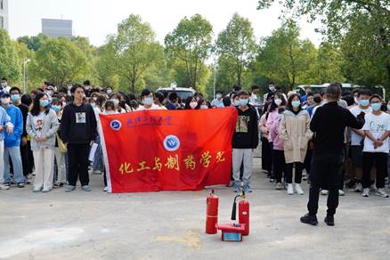 同学们有序在指定场地集中后,保卫处王老师讲解了相关消防知识,向同学们再次强调了宿舍与实验室消防安全,提醒同学们出门关闭宿舍电源,严禁使用大功率电器,在实验室严格遵守实验室操作规范等相关事项。