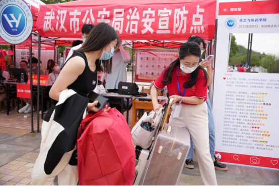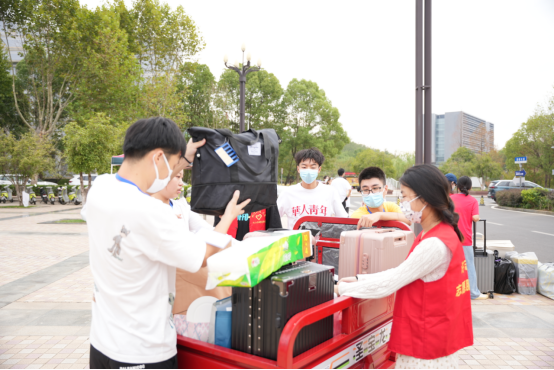 在化药迎新大本营、学生宿舍楼梯间、校门口迎新点,你一定能看到“红马甲”“红帽子”“红袖标”们忙碌有序的身影,你也可以看到小推车、三轮车、私家车频繁出现在搬运行李的现场,上百名师生志愿者和党员志愿者奔走于迎新点和宿舍之间、穿梭于校园的各个角落,为700余名新生入校提供“拎包入住服务”,充当向导、答疑解惑、安抚情绪,每个人都身兼数职,在这个不大的校园里,志愿者们合力打通了新生入学的“最后一公里”,用最大的诚意,让新生感受学院的温暖。除了学长学姐,此次迎新现场最吸引人注意的是由60余名新生组成的“化之曜新生代志愿服务队”,才刚刚放下行李、整理好宿舍的他们不顾自己路途的疲惫,第一时间就投入到学院迎新志愿服务工作中,来自辽宁盘锦的“中国好人”陈资霖就是其中的典型代表,在完成报到手续后他就立即加入到志愿者队伍中,帮助新生们搬送行李。“刚进校第一天,我就感受到了校园的温暖,当即便提出,也想加入志愿服务队伍”。