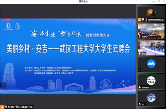 会上,中南百草园集团有限公司、浙江挚领科技有限公司、安吉芽芽度假村有限公司、浙江湖州中启房地产资产评估有限责任公司和安吉县科声磁性器材有限公司等5家重点企业进行实习实践岗位招聘宣讲,学生通过线上积极连线参与,进行充分沟通交流。