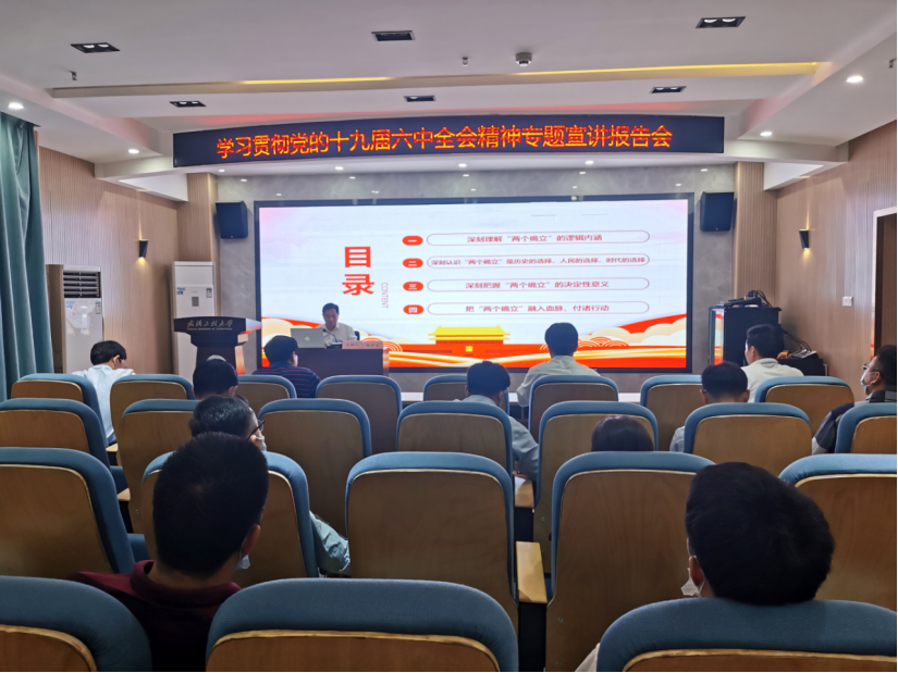 整场宣讲报告主题鲜明、内容丰富、振奋人心、意犹未尽,针对性、指导性和实践性强,既是一场精彩的理论宣讲,更是一次促进学校高质量发展的精准指导,让与会师生深受教育和启发。大家纷纷表示,要继续认真学习领会党的十九届六中全会精神,进一步深刻认识“两个确立”的决定性意义,坚决把捍卫“两个确立”、做到“两个维护”作为最高政治原则和根本政治规矩,紧密结合校院工作实际和“十四五”规划,聚焦主责主业,把学习全会精神的思想收获转化为推动学校发展的强大动力,以优异成绩迎接学校五十周年校庆。