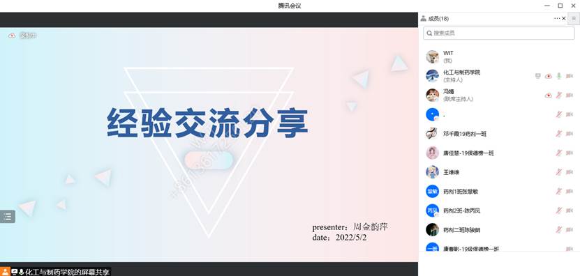 本网讯(通讯员 冯婧)为展示mk网页版登录入口优秀学子风采,发挥身边榜样的传、帮、带作用,引导广大学子树立奋进目标,做好学业生涯规划,mk网页版登录入口于5月2日举行“榜样力量 青春引航”优秀学子经验分享会,线下分享和线上观看同时进行。本次优秀学子经验分享会邀请2019级药剂学硕士研究生周金韵萍和本科2018级药卓班学生兰鑫担任主讲人,学院学生代表参加了此次活动。
