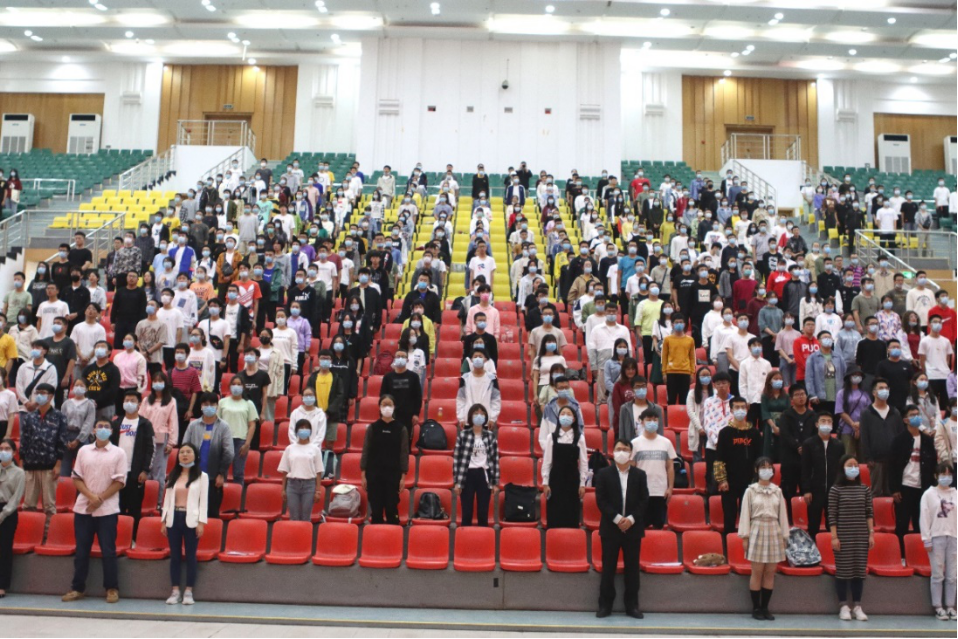 典礼伊始,全体起立,高唱国歌,嘹亮的歌声响彻礼堂。