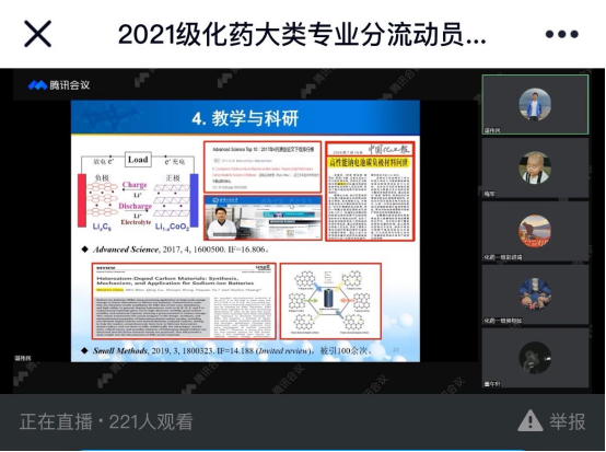 在动员大会之前,学院组织两场线上专业认知讲座。制药系主任古双喜、能源化工系主任吴华东和化工系智能化工教研室副主任杨犁分别进行了讲座,他们从专业起源、特色、发展、就业情况以及培养目标等方面对四个专业进行全面详细的介绍,并对同学们在专业发展方向、毕业生薪资待遇等方面的困惑进行了一一解答。动员大会之后,学院又就专业分流具体填报方法进行了线上答疑。本次专业认知讲座和动员大会为2021级全体学生的专业选择和未来发展指明了方向,对学生进一步认识专业、认识自我,选择更适合自己的专业提供了有益的帮助。(审稿 周丹)
