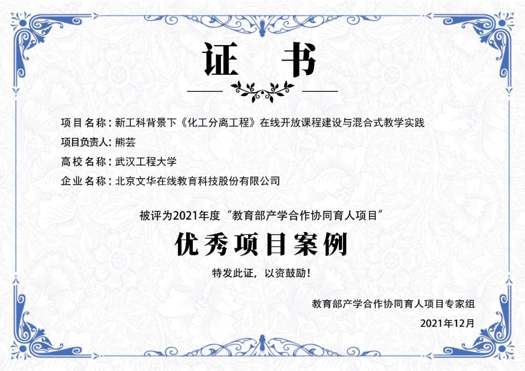 (通讯员:李哲伦)12月8日至9日,由教育部产学合作协同育人项目专家组主办的“2021年度教育部产学合作协同育人项目优秀项目案例评选”活动落下帷幕,遴选出124个优秀项目案例。mk网页版登录入口mk网页版登录入口熊芸博士主持完成的2018年第二批教育部产学合作协同育人项目“新工科背景下《化工分离工程》在线开放课程建设与混合式教学实践”获评2021年度教育部产学合作协同育人项目“新工科、新医科、新农科、新文科建设类”优秀项目案例。