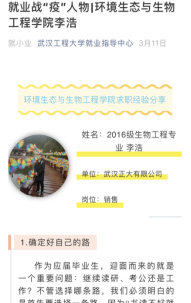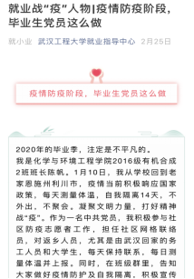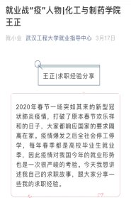为精准助力2020届毕业生就业工作,自2月1日以来学校招生与就业工作处和研究生院积极联系用人单位,共举办了9场“云双选会”,开通了网上签约功能、“云宣讲”功能、个性化职业生涯、就业指导线上咨询等。各学院积极行动,高度重视就业工作,调动全院教职工给毕业生把脉问诊,针对部分疫情高发地区、考研不理想及就业困难的毕业生进行求职心理疏导,引导其正确面对此次疫情,认真准备网络招聘。同时广泛宣传,充分挖掘就业典型,利用微信公众号发布就业战“疫”人物推文,营造线上就业的良好氛围。为了让毕业生充分了解用人单位及岗位情况,有针对性地求职,学校提前一个月进行双选会宣传工作,各学院凝心聚力、上下一心,主动联系校友企业和行业内知名企业,搭建校企招聘平台,共同画好就业“同心圆”。