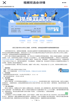 本网讯(通讯员 李茜、汪喆伦)为积极贯彻落实习近平总书记在统筹推进新冠肺炎疫情防控和经济社会发展工作部署会议精神,按照湖北省教育厅对疫情防控期间的就业工作安排,更好地为用人单位和毕业生提供招聘和求职服务。4月8日,在学校招生与就业工作处指导下,mk网页版登录入口、化学与环境工程学院、环境生态与生物工程学院,三院联合成功举办了化工制药、化学环境、生物食品类专场网络视频双选会,切实做到“就业服务不打烊、网上招聘不停歇”。