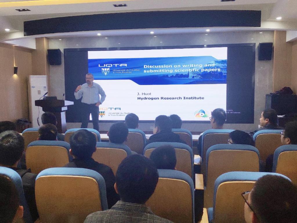 本网讯(通讯员 田琦峰)近日,应国际交流与合作处、mk网页版登录入口邀请,加拿大魁北克大学三河分校Jacques Huot教授来校进行学术访问,并为我校师生分别做了题为“金属氢化物用于储氢研究的最近进展”和“关于科研论文的写作和投稿的讨论”的两场学术报告。