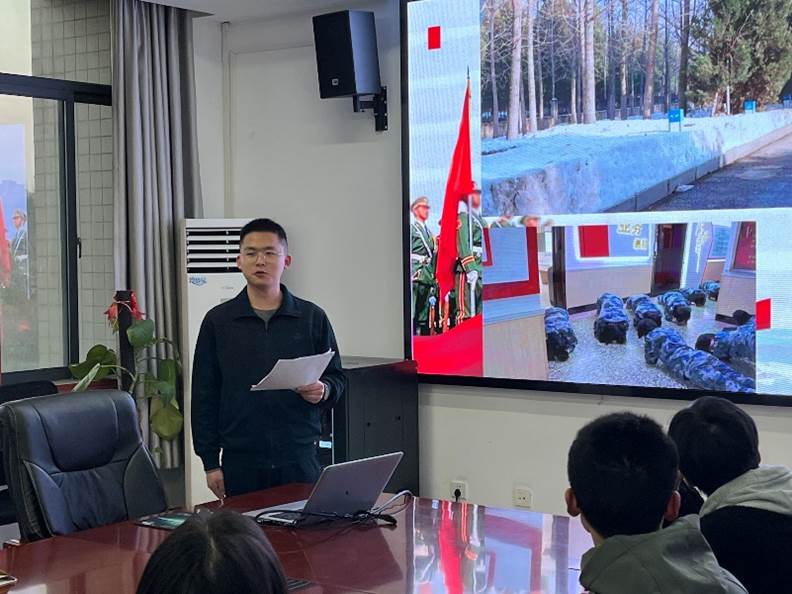 退役复学学生郭浩贤同学以《牢记习主席嘱托 传承红色基因》为题,声情并茂的讲述了自己卫国戍边的动人故事。他曾服役于西藏边防某师,在讲述我国歼20战斗机护送志愿军遗骸进入我国领空,边防指挥所内全部起立,向着烈士们敬礼的场景的时候,在座的党员同学们无不热泪盈眶。郭浩贤同学以自身的亲身经历告诉各位学生党员,是前赴后继的人民子弟兵守卫着边疆寸土,才创造出国泰民安与清平盛世。他呼吁广大同学珍惜学习生活,坚定不移听党话、跟党走,立志做有理想、敢担当、能吃苦、肯奋斗的新时代好青年。