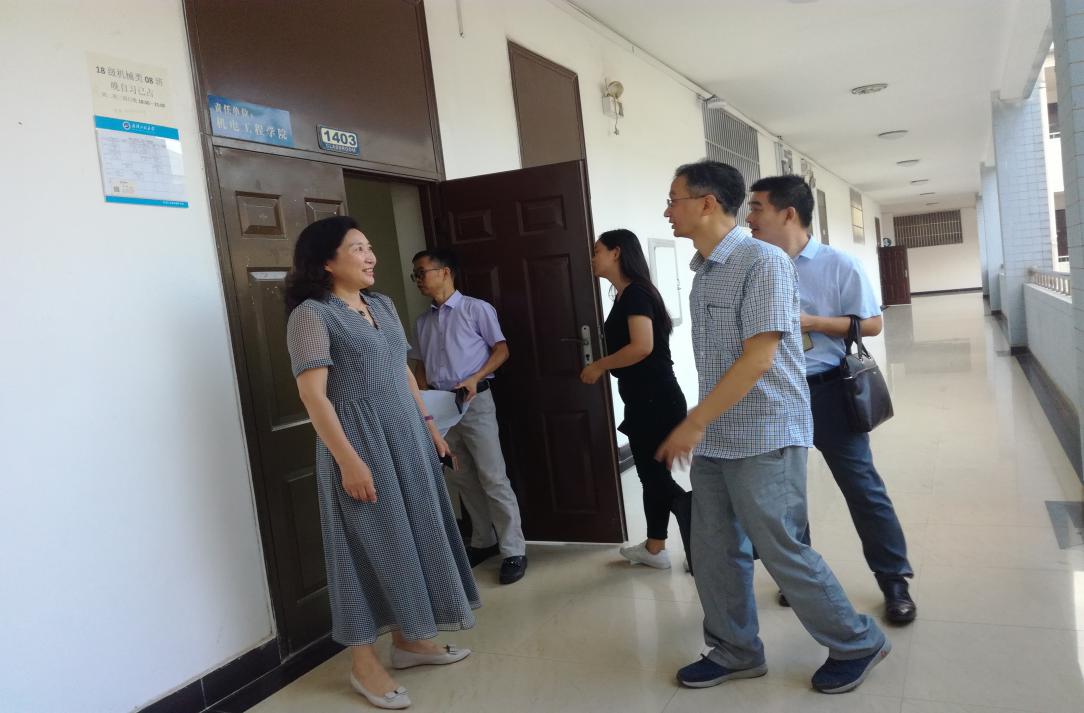 8月26日上午,mk网页版登录入口党委书记王雪梅、党委副书记田勇和教学副院长刘生鹏带领学院教学管理办公室高友智老师、学生辅导员李茜、沈霁月、汪喆伦、胡舒乐等老师深入到各教学楼教室检查上课情况,了解教师课前准备工作,掌握学生到课情况和学习状态,与师生们同上“开学第一课”。