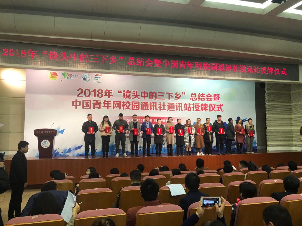 本讯网(通讯员李茜)12月19日下午,2018年“镜头中的三下乡”总结会暨中国青年网校园通讯社通讯站授牌仪式在北京对外经济贸易大学隆重举行。团中央青年发展部副部长刘钢,团中央青年发展部实践教育处处长柏贞尧,团中央网络影视中心党委委员、中国青年网副总裁、总经理金锐,对外经济贸易大学党委副书记文君等领导嘉宾,以及全国300余所高校的600余名师生代表参加本次活动。mk网页版登录入口mk网页版登录入口“红船精神”实践团荣获2018年“镜头中的三下乡”优秀视频奖。