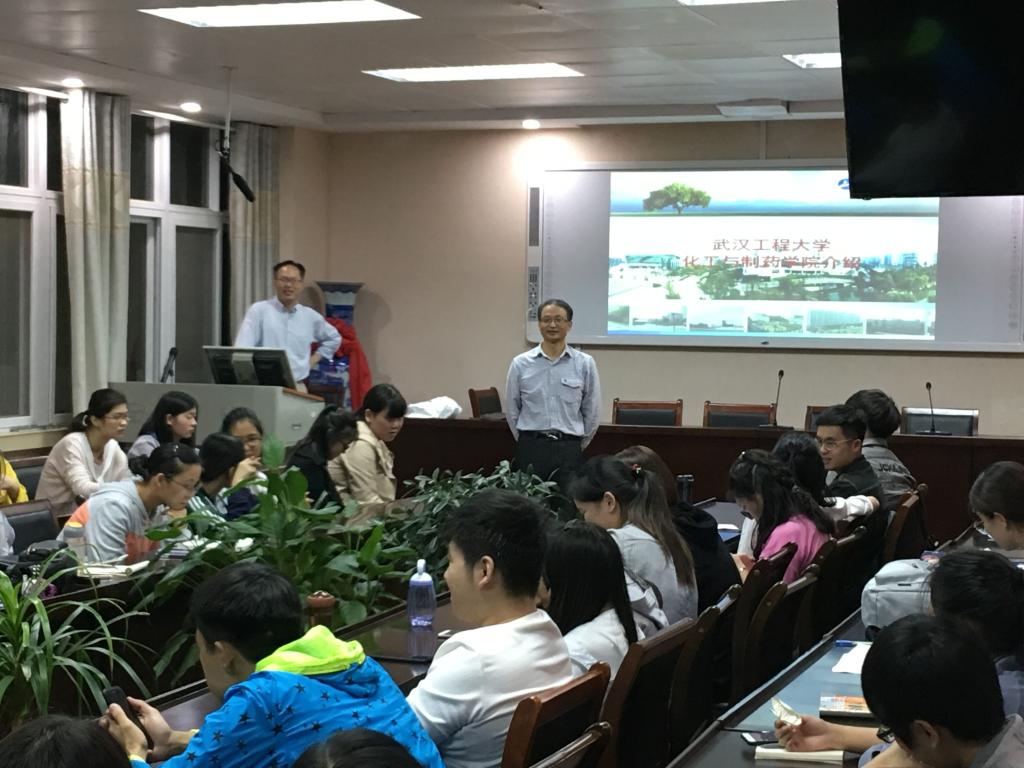 当晚7点半,招生宣传活动准时在信阳师范学院化学化工学院四楼会议室召开。宣讲会由化学化工学院吴志伟书记主持,mk网页版登录入口龙思会院长给学生们做了招生宣传报告。