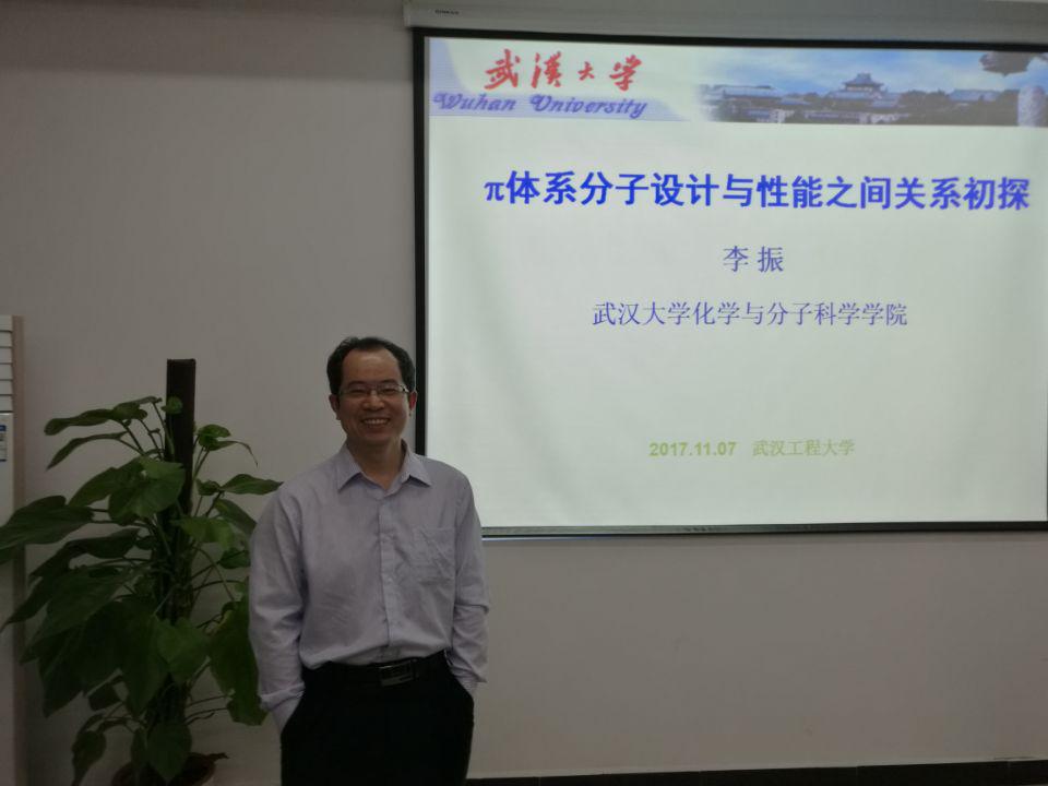 11月7日下午,应我校mk网页版登录入口、科技处和绿色化工过程教育部重点实验室邀请,武汉大学化学与分子学院博士生导师李振教授在绿色化工过程教育部重点实验室会议室为我校师生作了题为“π体系分子设计与性能之间关系初探”的学术报告。mk网页版登录入口副院长刘生鹏教授主持并致欢迎辞,mk网页版登录入口龙思会、汪峰、罗晓刚等教授及研究生聆听了报告并进行了深入交流。