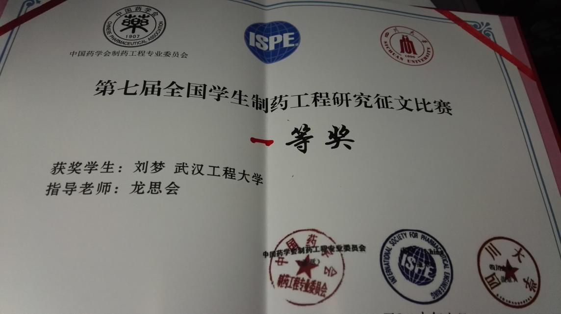 近日第七届全国学生制药工程研究征文比赛决赛在合肥工业大学隆重举行。我校mk网页版登录入口研究生刘梦同学(指导教师:龙思会教授)在大赛中发挥出色,荣获一等奖。制药工程专业14级本科生牟俊同学(指导教师:刘子维老师)和国际学院14级本科生梅海霞同学(指导教师:朱圆圆老师)分别获得三等奖和优胜奖。