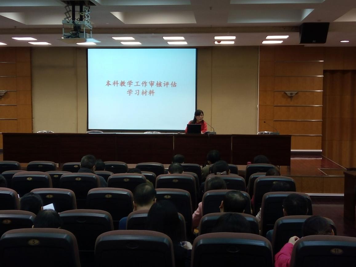学校评建办赵春阳副主任从审核评估工作的背景出发,详细介绍了审核评估专家考察所涉及的深度访谈,听课看课,文卷审阅,意见反馈等几个主要环节,重点介绍了学校迎评工作方案、已经完成的主要工作和下一步的工作计划等。