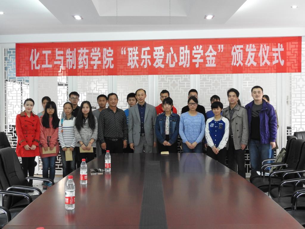 王火利老师宣读了本次联乐爱心助学金受助同学名单及受助金额,2013级化学工程与工艺侯德榜(2)班余攀同学代表受助学生进行了发言。