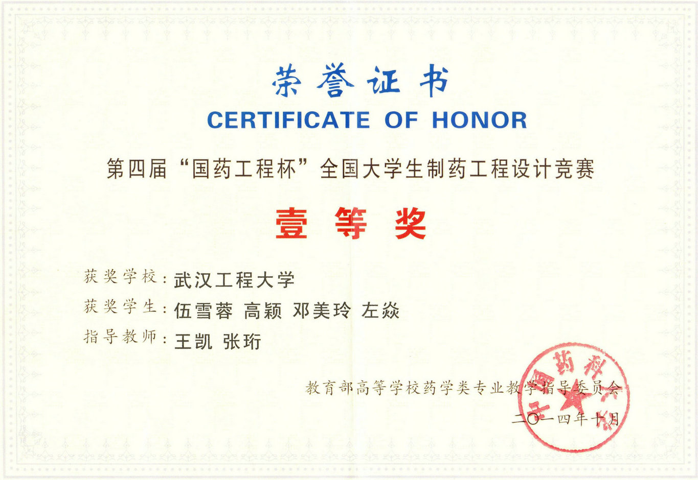 在教务处、mk网页版登录入口和制药工程专业人才发展中心的支持下,我校组建了2011级制药工程和药物制剂专业的3个队参加此次全国制药工程设计竞赛,在学生和老师的共同努力下,经过激烈的角逐,获得一等奖1项、三等奖1项、优胜奖1项。本次竞赛是我校在历届全国大学生制药工程设计竞赛中取得最的好成绩,实现了一等奖的零突破。