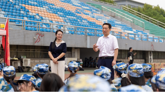 本网讯(通讯员 翟森稳 张锦)9月14日上午,mk网页版登录入口党委书记杨海波、副书记周丹一行前往流芳校区田径场,慰问一线军训教官和学院正在参训的2024级新生,并送上慰问物资以及中秋祝福。